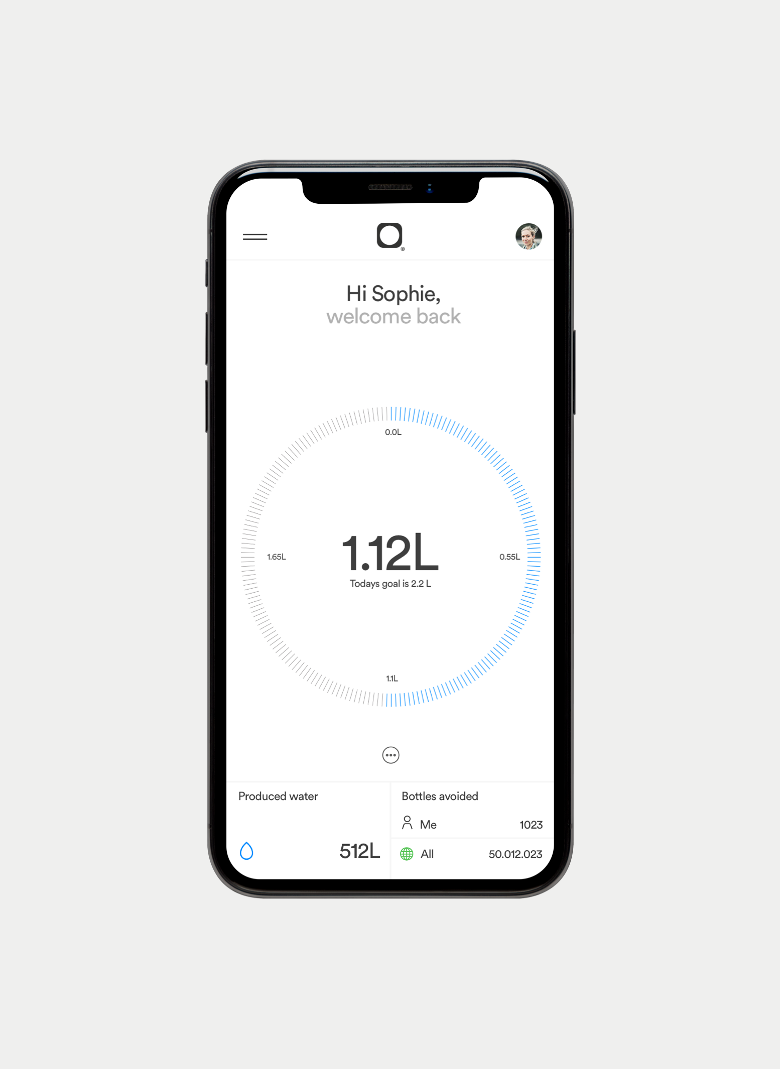 As a part of the brand vision we explored the potential for an interface enabling users to gain self awareness, knowledge and hydration insights about their water consumption.
