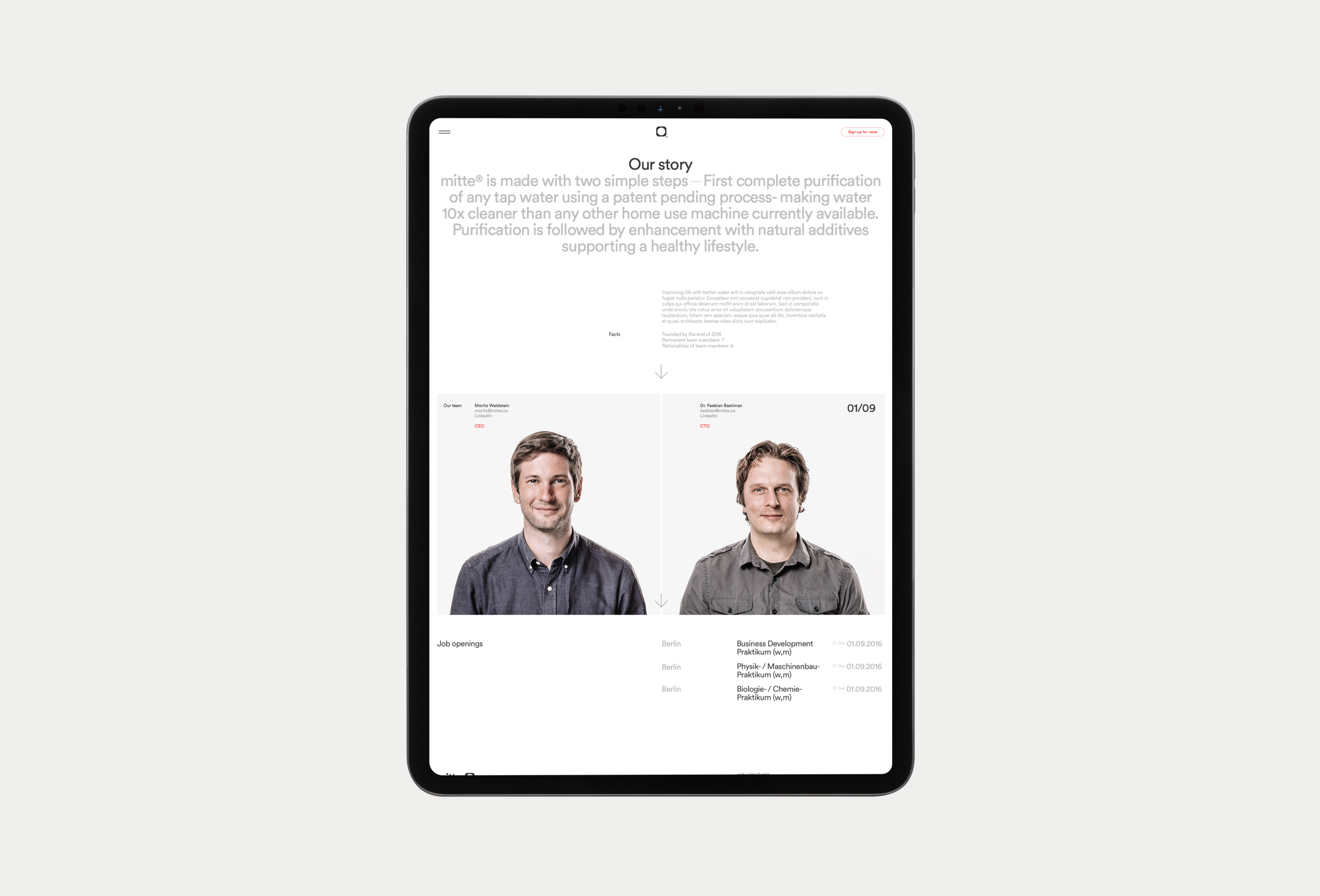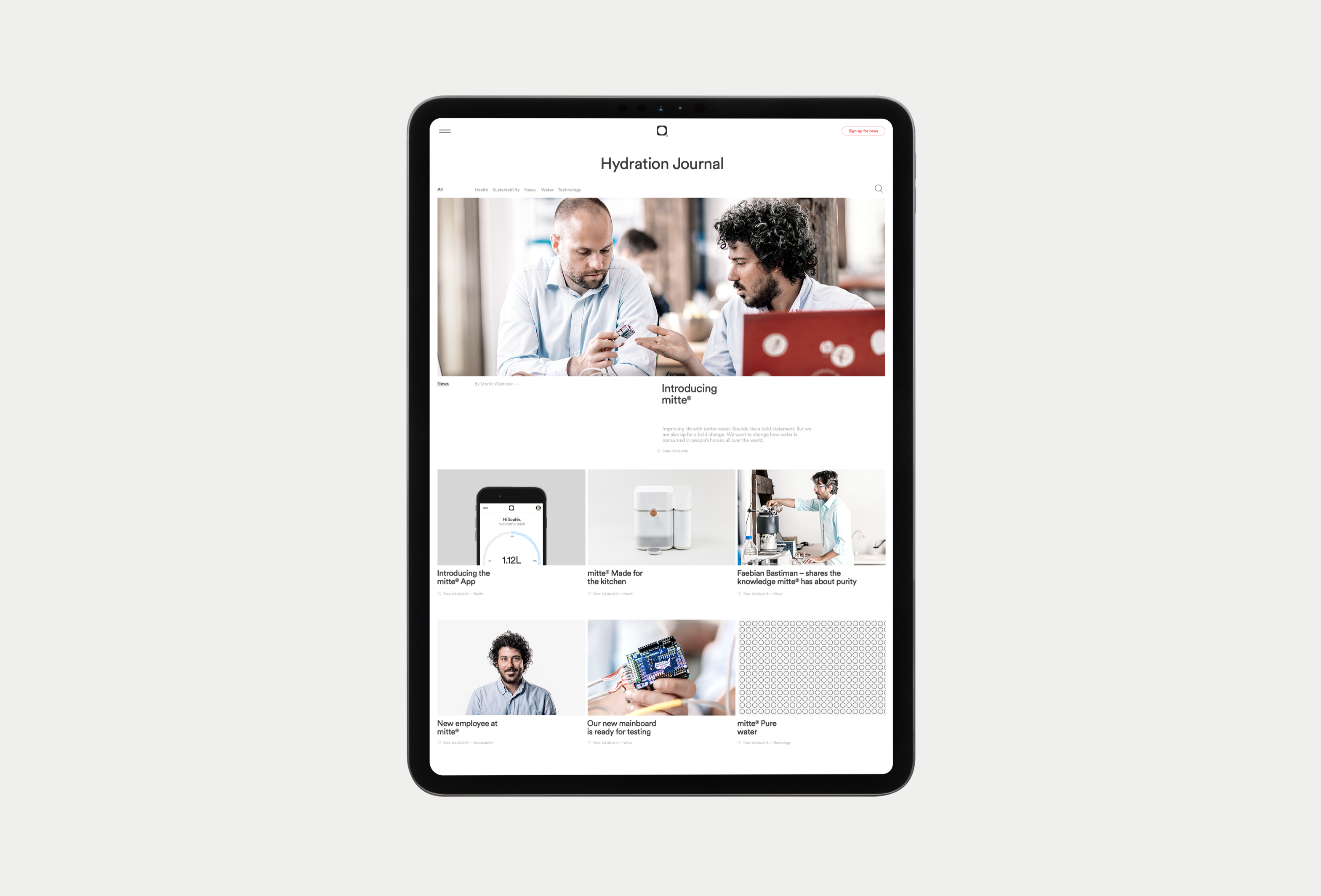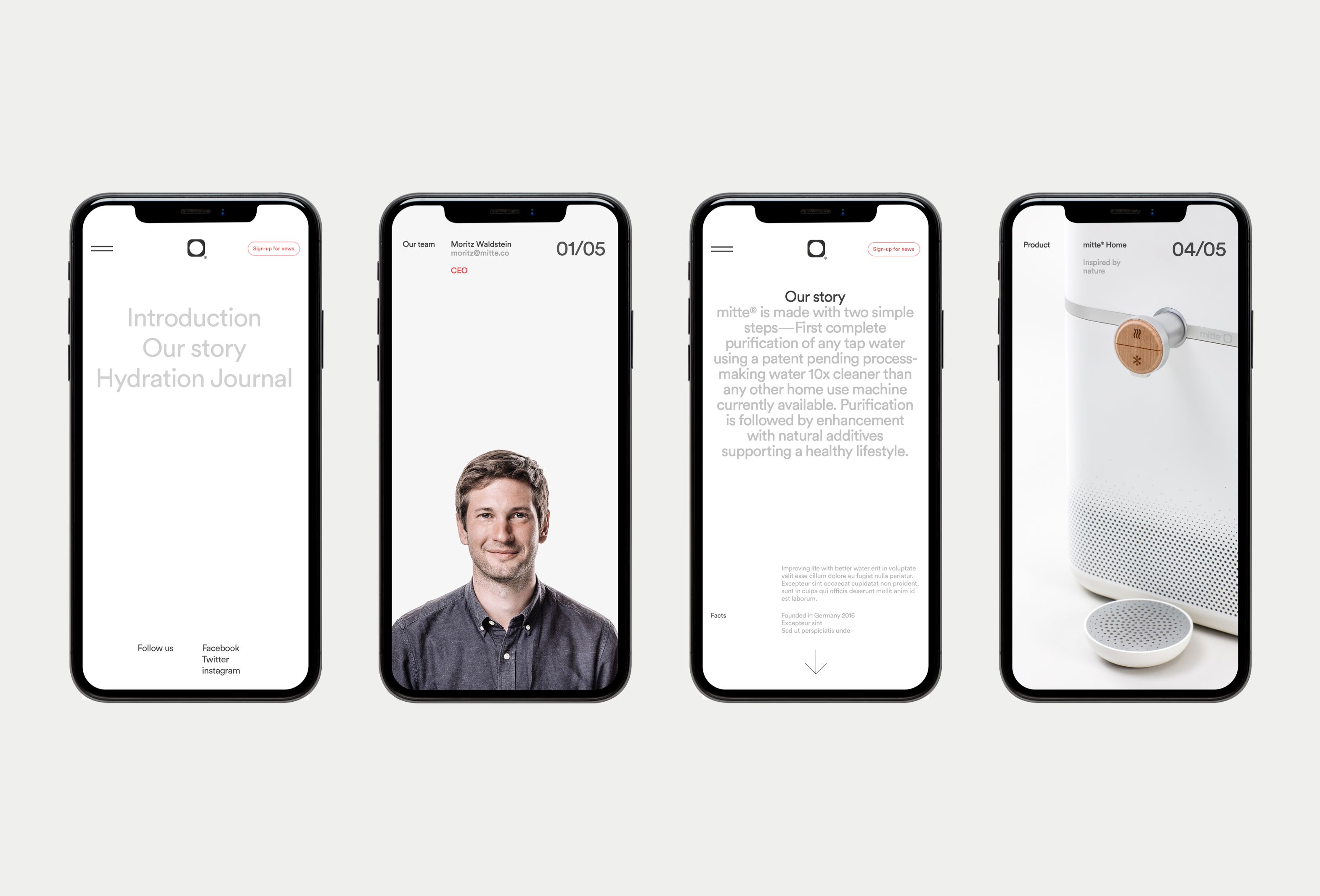 German venture Mitte® set out to introduce a ground-breaking, smart, and sustainable water appliance for your home. We have worked as a collaborative partner throughout the growth journey, from early vision explorations to fundraising and a full digital brand roll out.